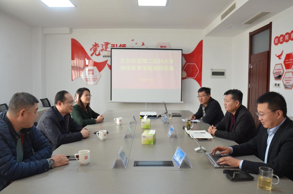 11月12日,山东第二医科大学继续教育学院院长李向辉等一行三人来院调研交流。继续教育学院党总支书记贾长响、院长马鹤等接待了来访客人并进行座谈。