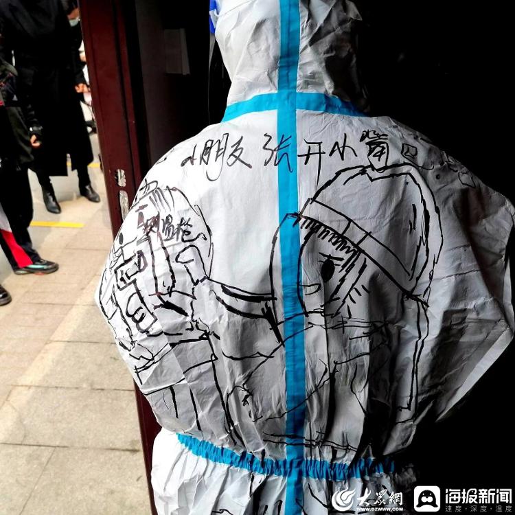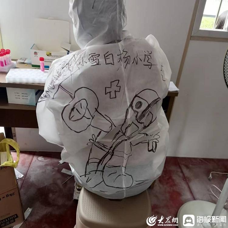 王衍国在小区内做志愿者期间,认识了在核酸采样现场辅助医务人员进行核酸采样的志愿者陈琪。今年21岁的陈琪毕业于济宁学院学前教育专业,现在是一名幼儿园老师。3月31日,她主动加入到圣水苑小区志愿者队伍中,在一线进行核酸采样信息录入、协助医护人员进行核酸采样等工作。工作间隙,她利用自己的手绘特长,为防疫医务工作者“大白”们手绘卡通形象,向群众宣传防疫知识,为防疫工作者加油助威。